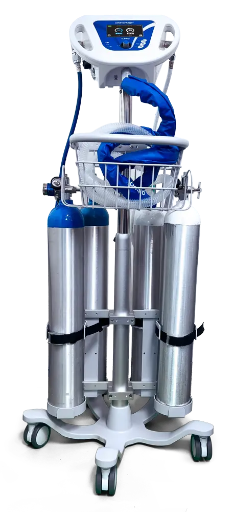 Designed for in-hospital use (ER, Labor and Delivery, Clinics, etc.), the new eAdvantage® provides a variable mixture of nitrous oxide and oxygen, on demand, to a conscious, spontaneously breathing patient for the relief of pain due to childbirth, trauma or other conditions where inhalation analgesia is clinically specified. It only requires the attachment to pressure-regulated medical oxygen and nitrous oxide gas supplies (wall outlet or cylinders), electrical supply or battery, and the attachment of a patient circuit with mouthpiece or facemask and scavenging hose to be ready for use.